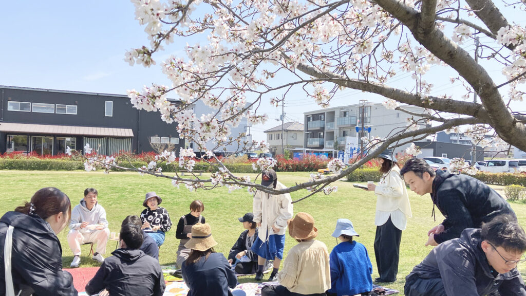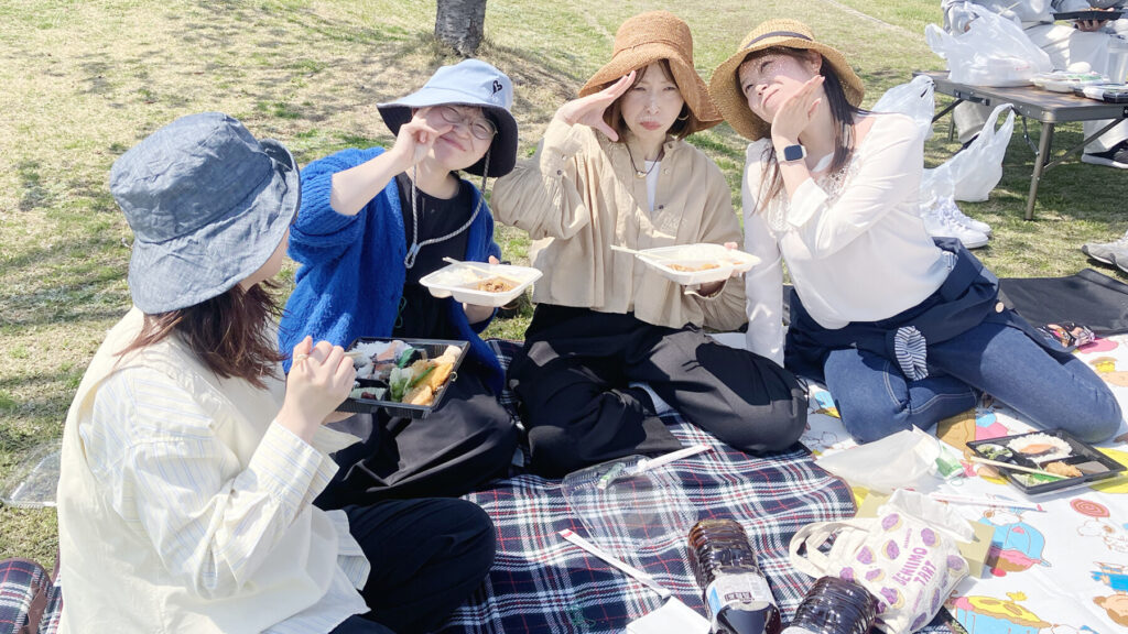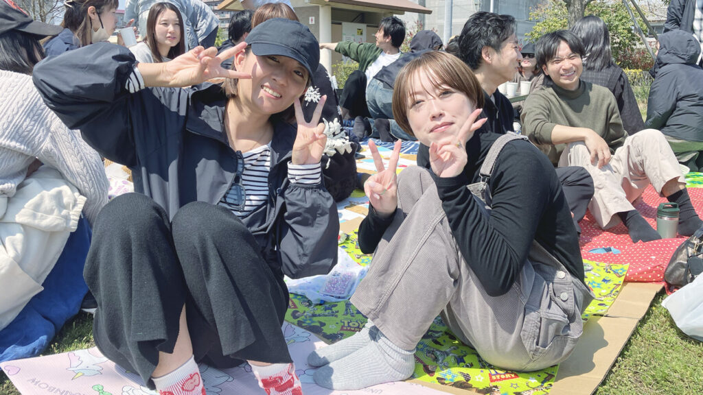 このように、好きなタイミングで集まって、食べ終わったら自由に過ごして…インドア派にもありがたい、肩肘張らないゆるめのお花見がアクティブ流。